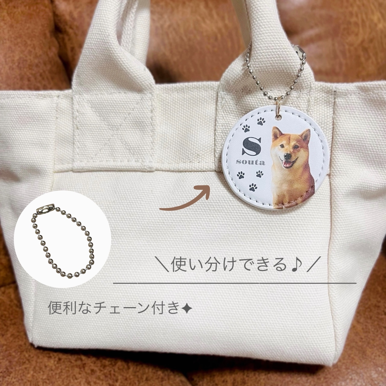 簡単に取り付けok「ボールチェーン」付き!