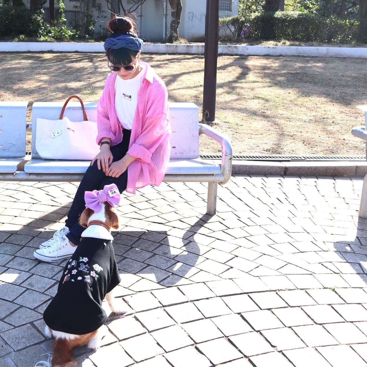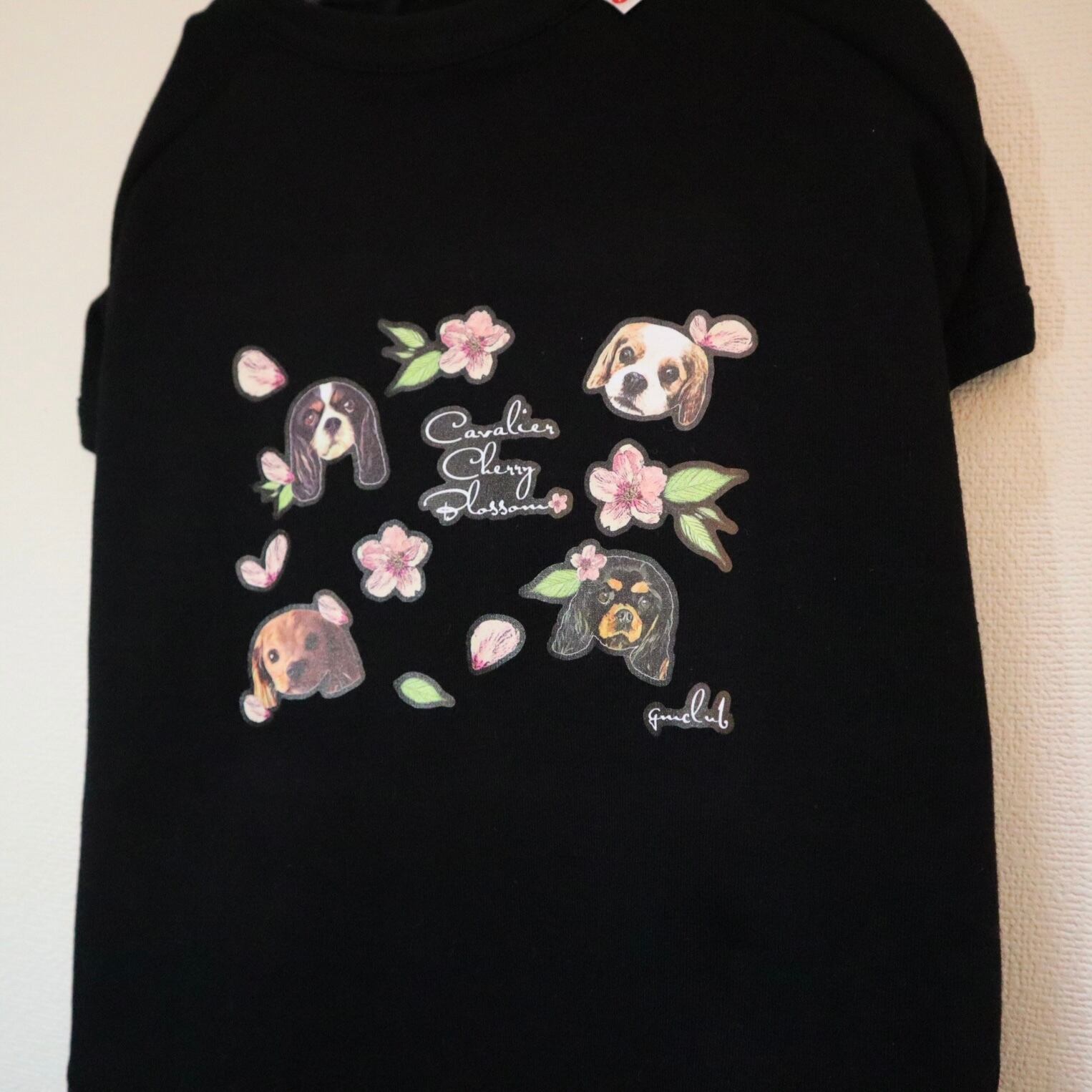 ◼︎made in Japan◼︎ワンコ用Tシャツ , Cavalier Cherry Blossom【 black M・L 】