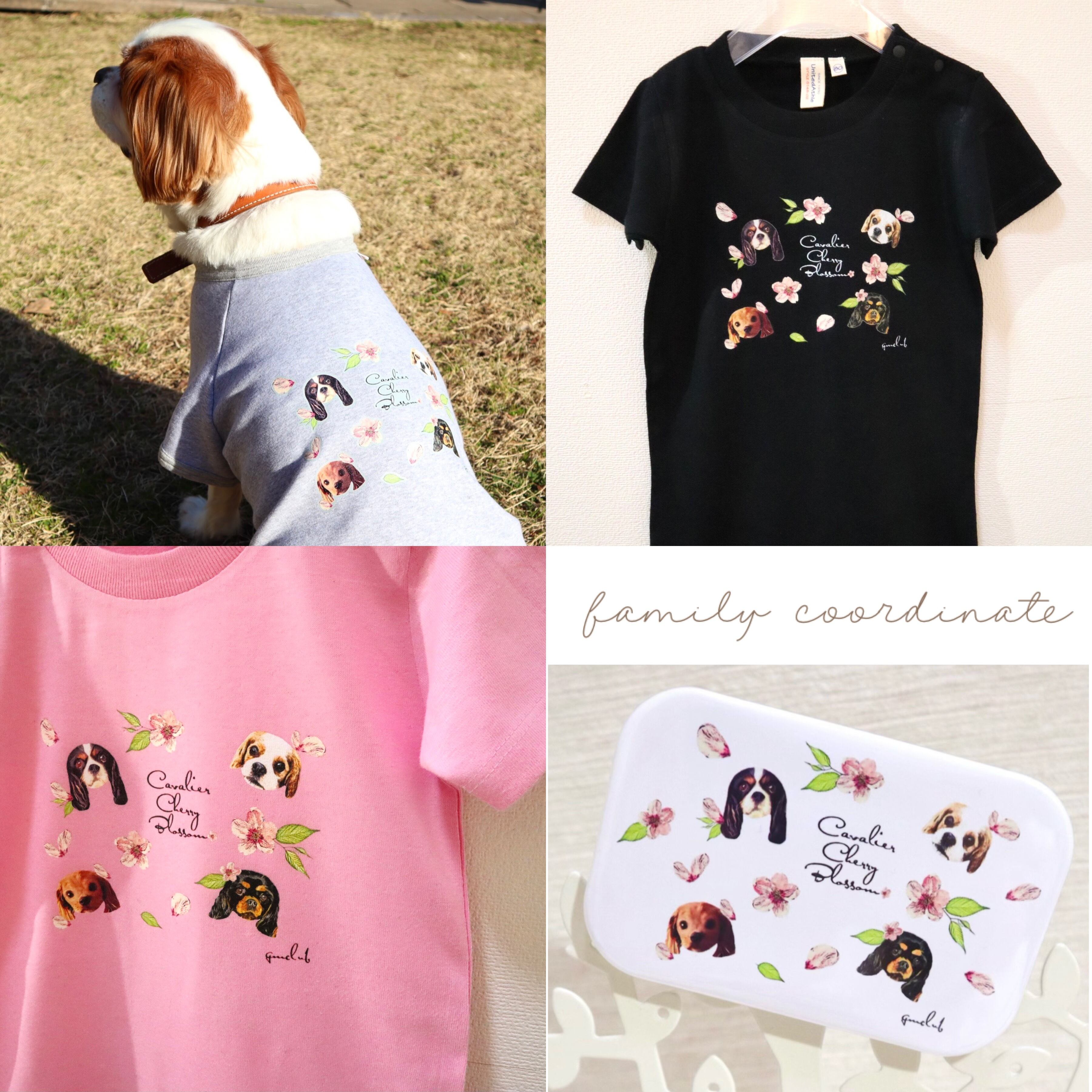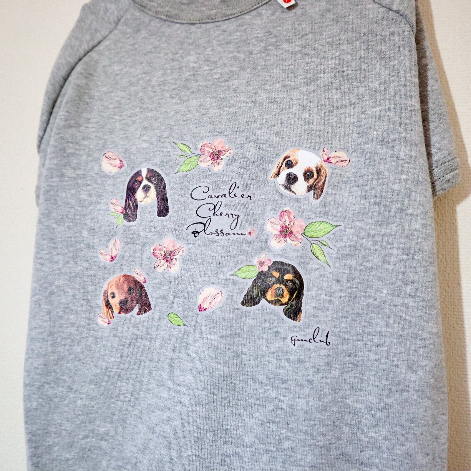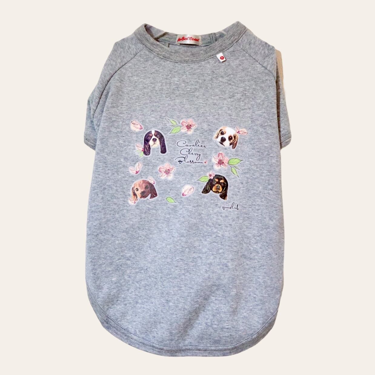 ◼︎made in Japan◼︎ワンコ用Tシャツ , Cavalier Cherry Blossom【 gray M・L 】