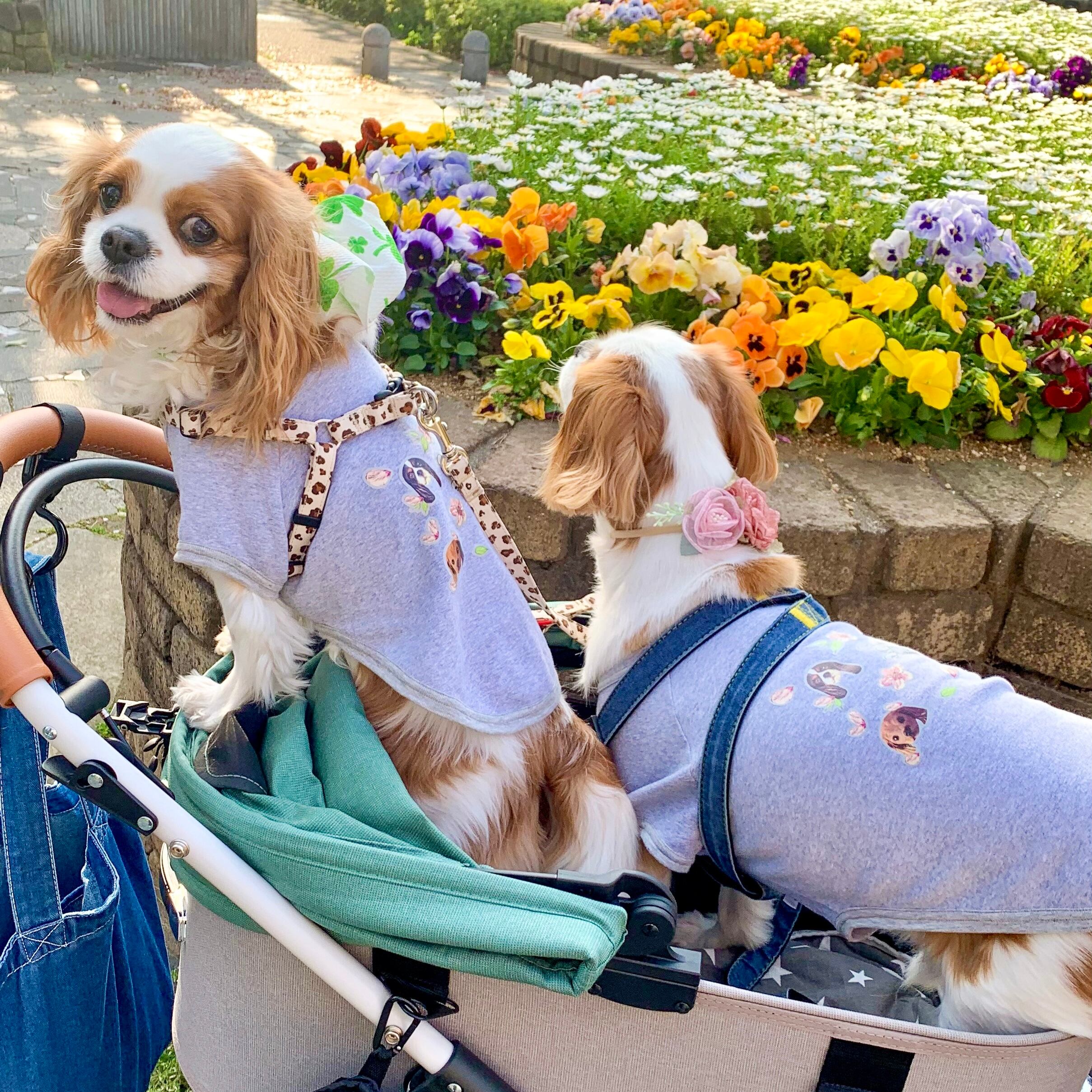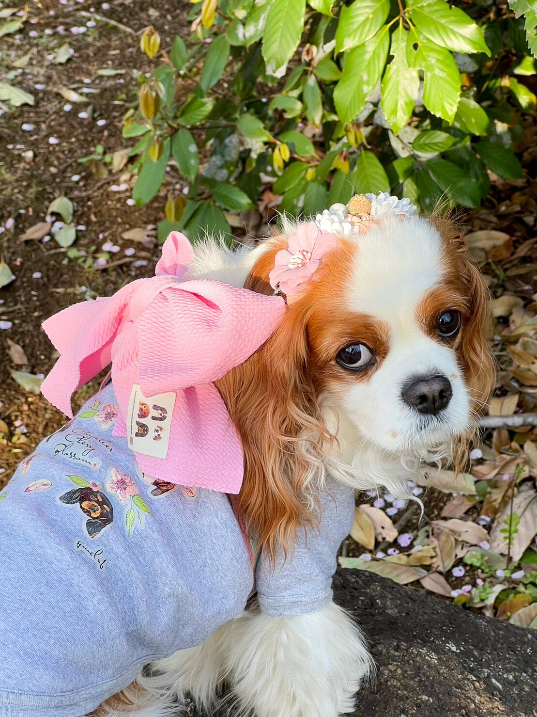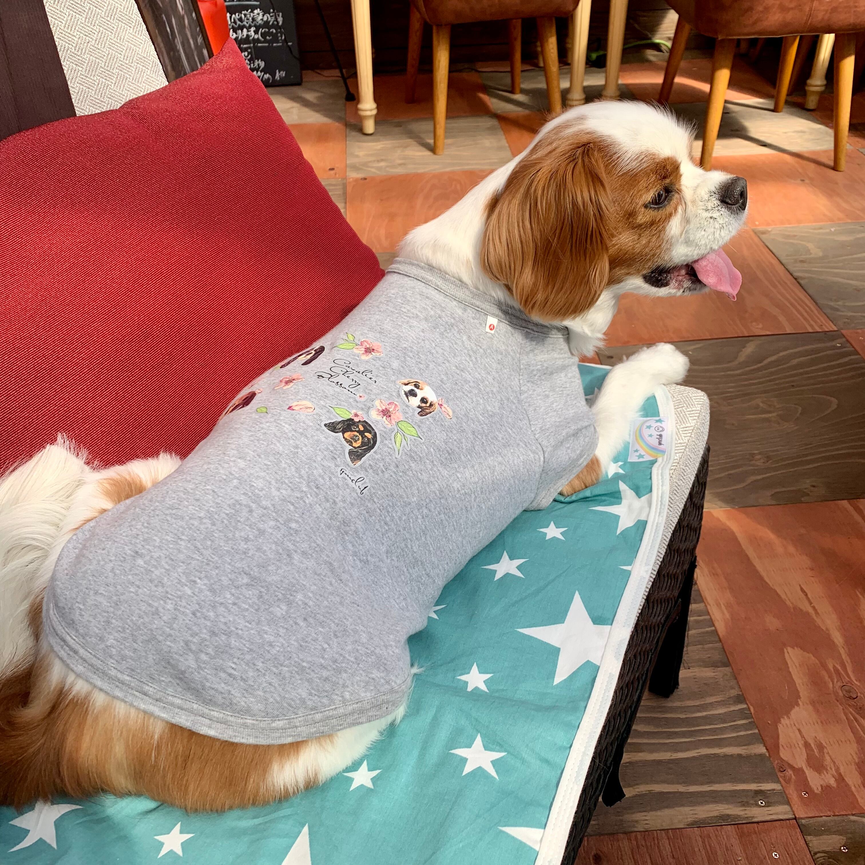 ◼︎made in Japan◼︎ワンコ用Tシャツ , Cavalier Cherry Blossom【 gray M・L 】