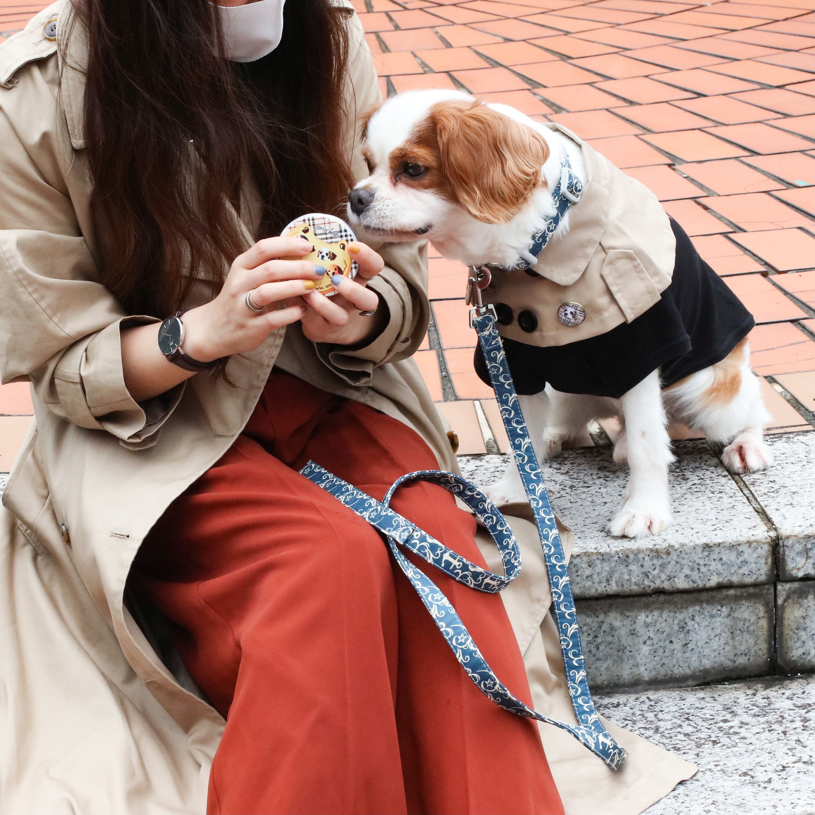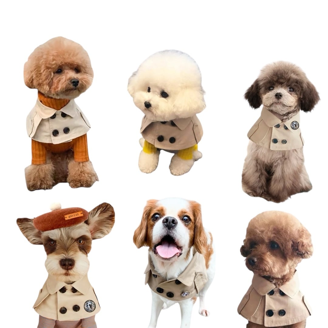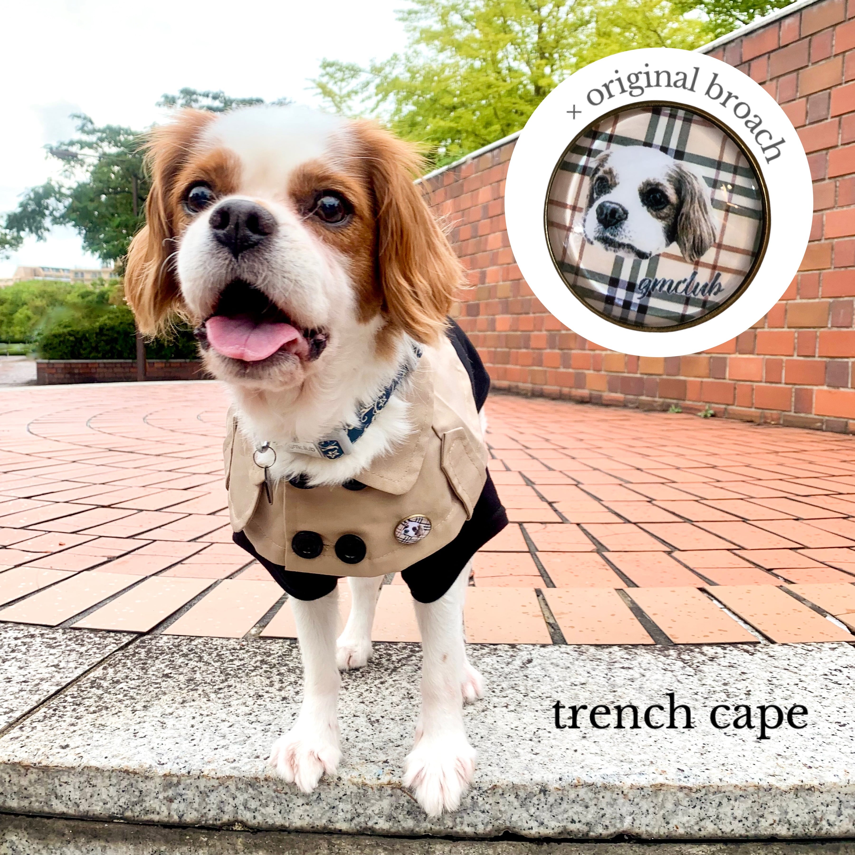 人間用トレンチコートと同じ生地を使用。