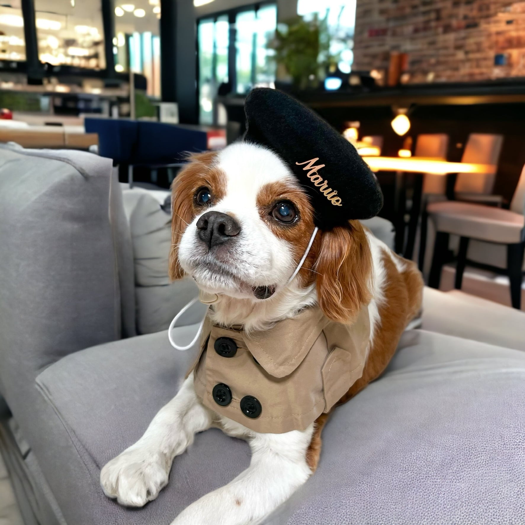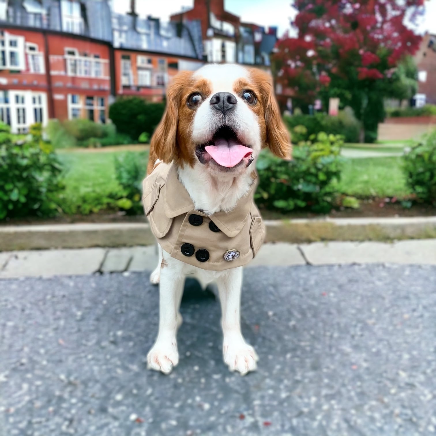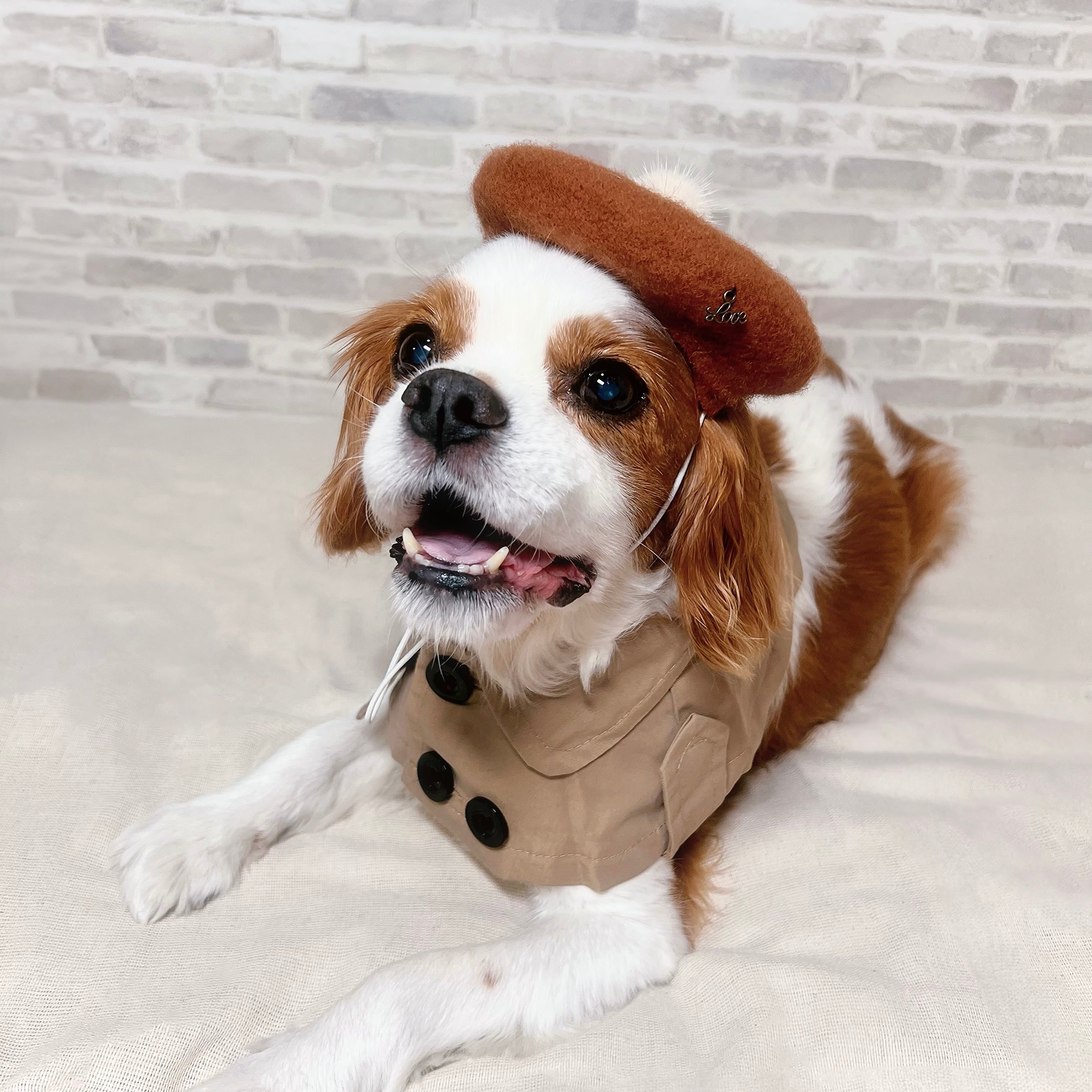人間用トレンチコートと同じ生地を使用。