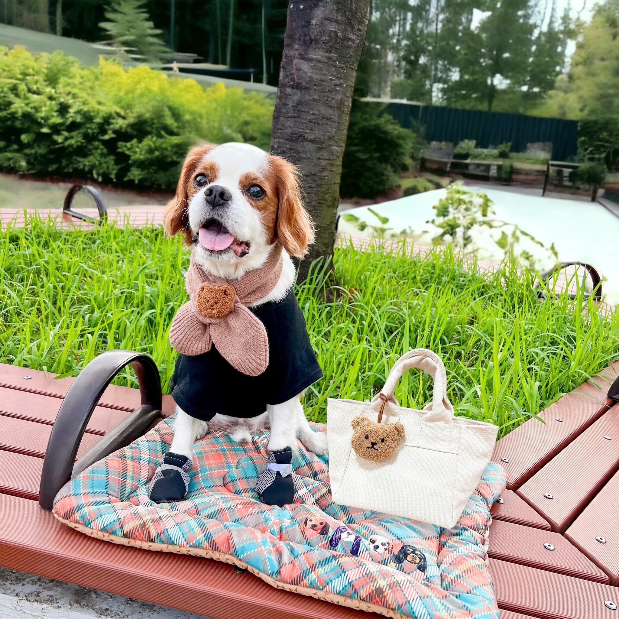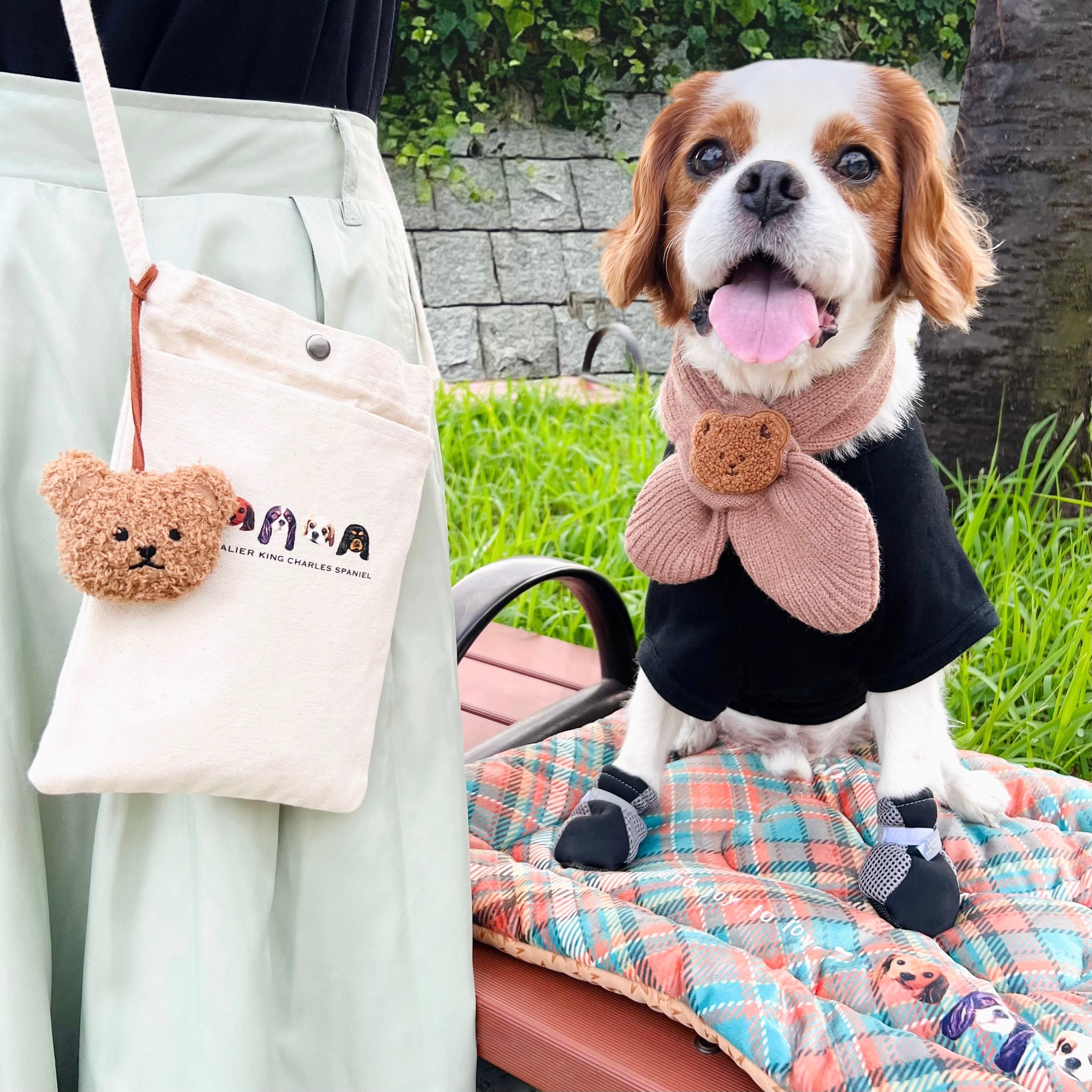 "Kuma tan muffler & charm set"