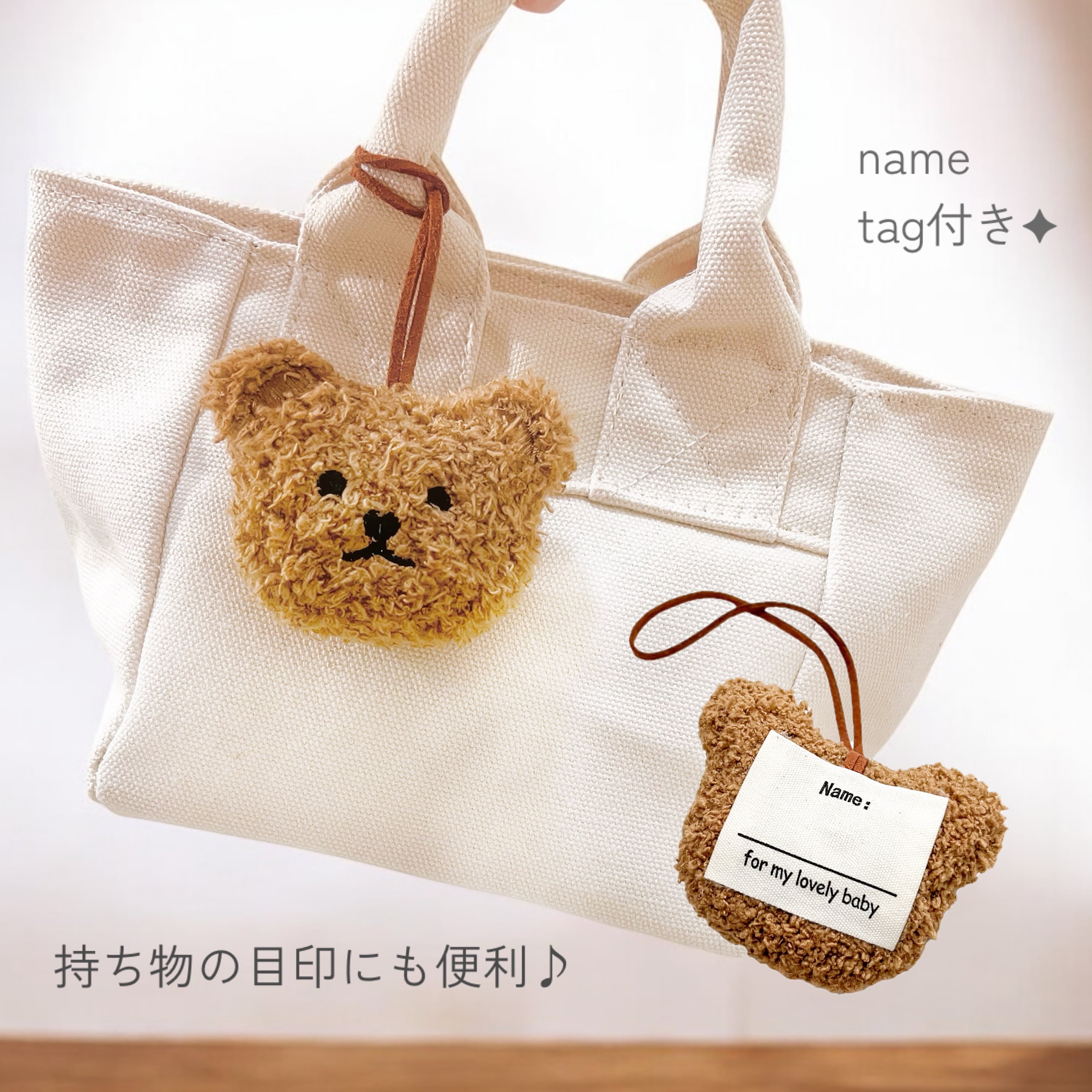 お名前を書ける仕様で、bagやバギーに付けたり